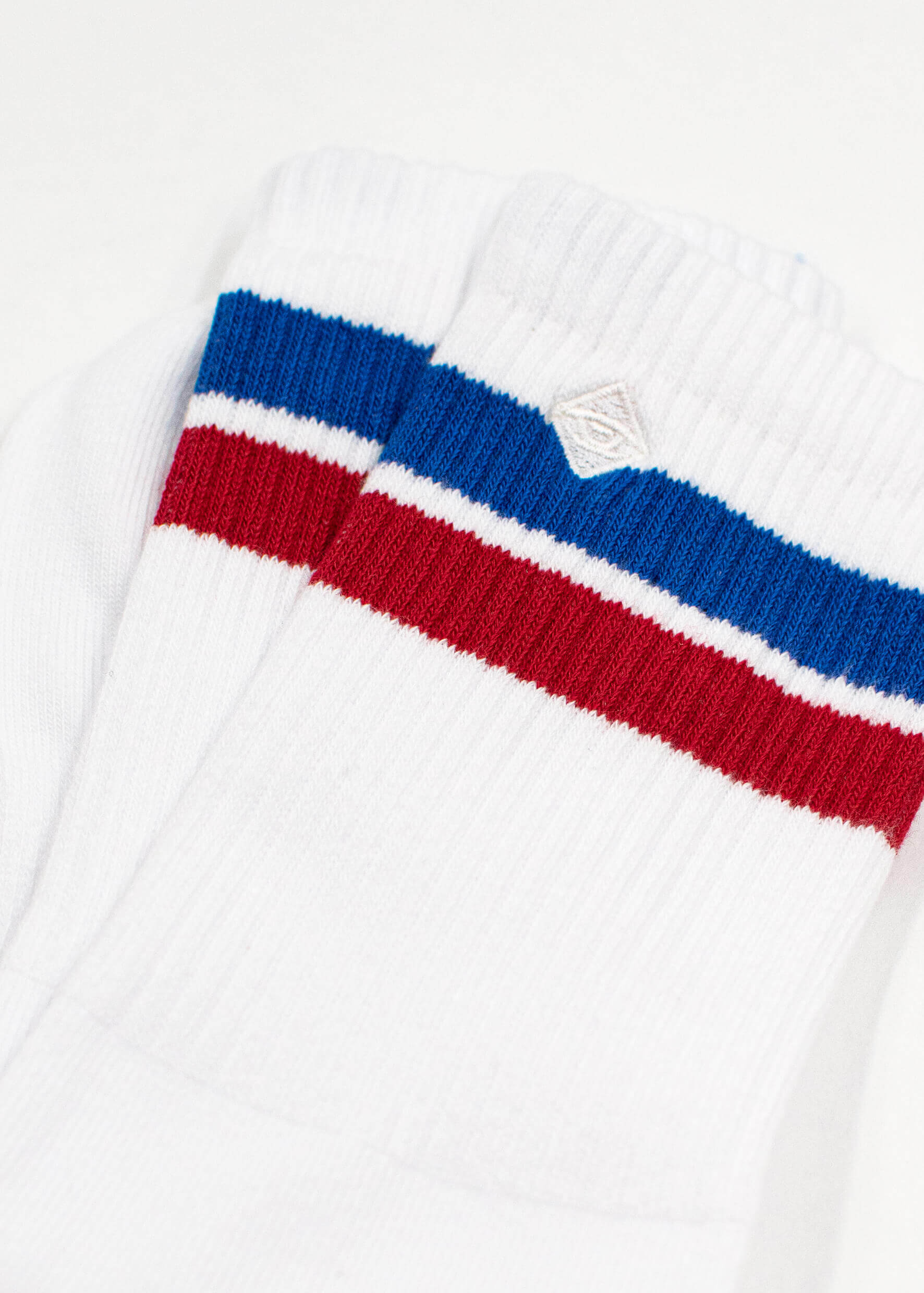 Weiße Tennissocken mit Streifen 1980 Red & Blue
